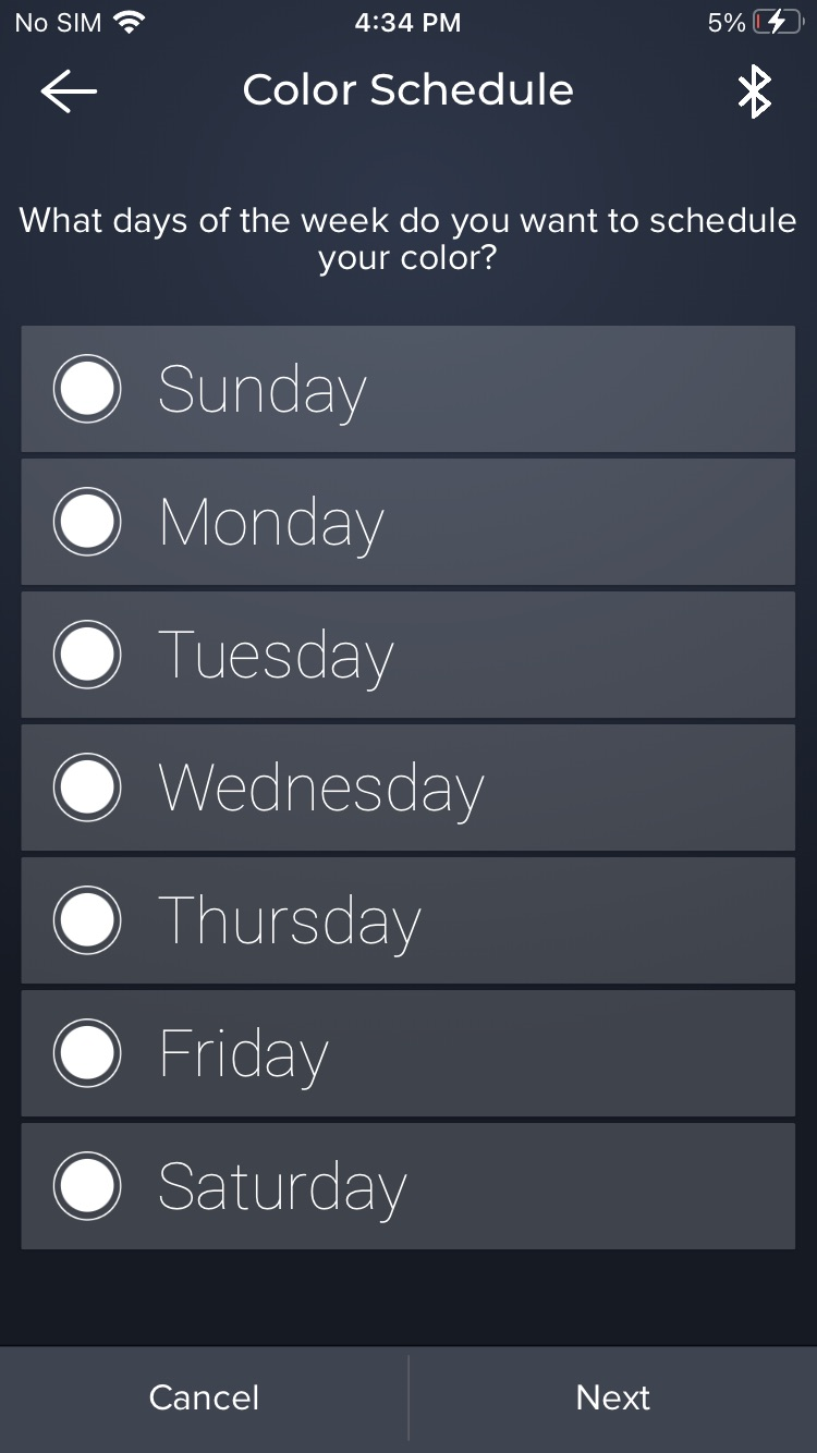 - Pick the days of the week when the scheduled actions should take place and tap “Next.”