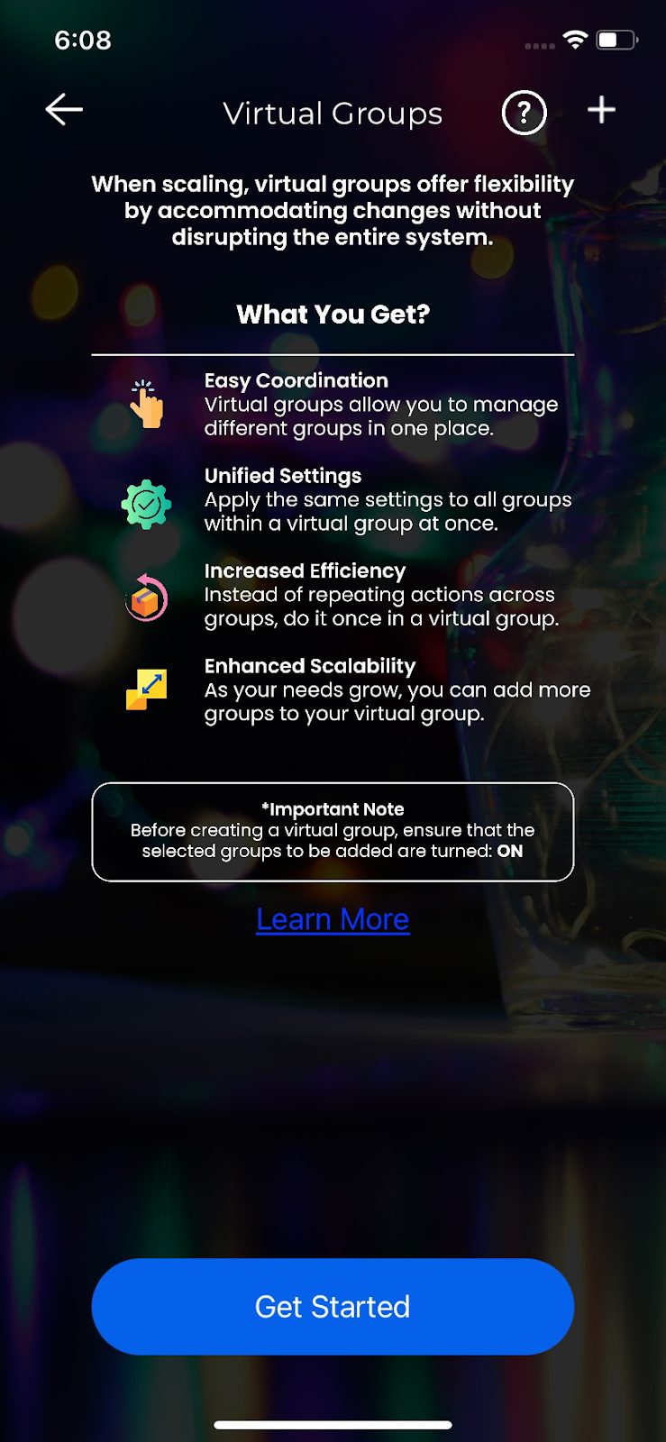 3. On the next screen, you will see the key benefits of the virtual groups feature. Tap on “Get Started”.