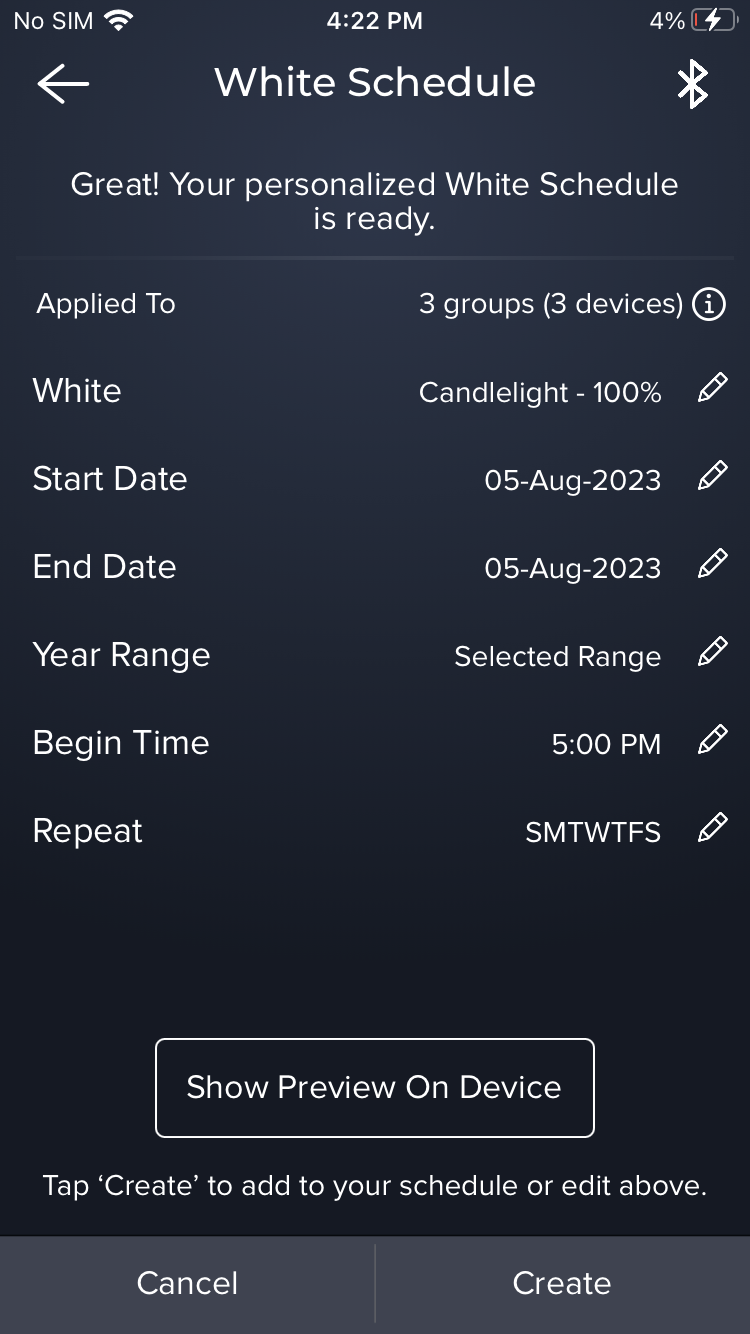 - Review the summary of your schedule and confirm by tapping “Create.”
