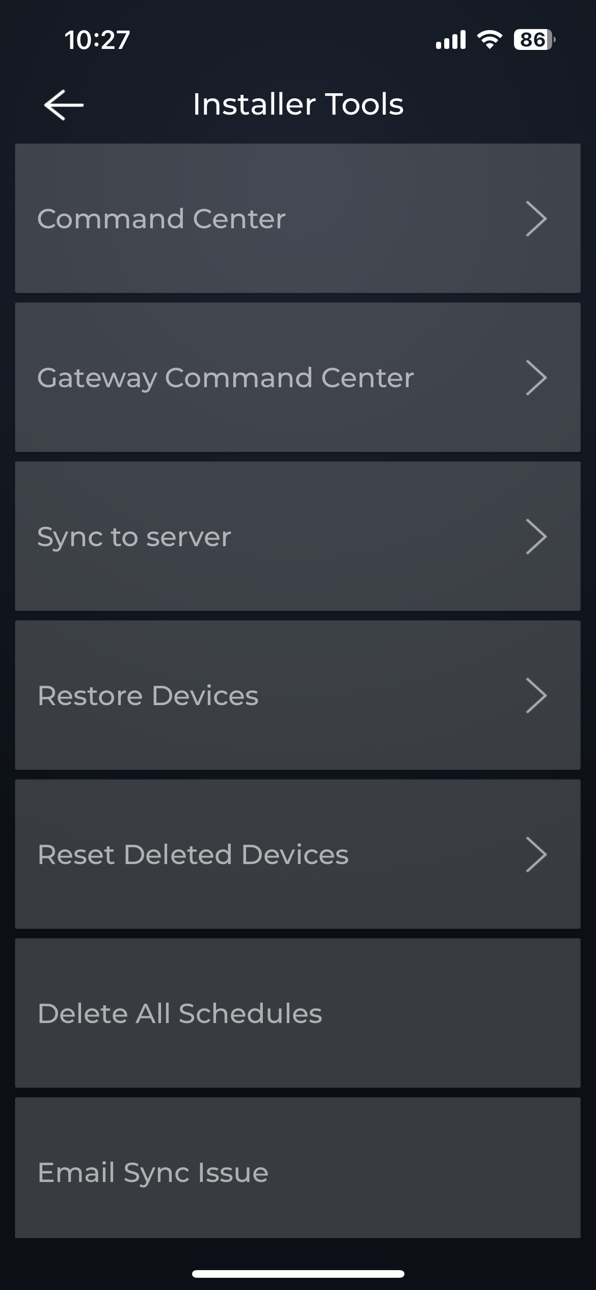 Go into the installer tools, and select "Gateway command center". Click on "Rescue" till a circle pops up. Select the circle, and click on "Firmware". Select the Gateway firmware at the top of the list "Gateway FW 1B7" and click on "Update". Once the gateway firmware is up to date, refresh the app, wait 1-2 minutes, and try the pairing process again.