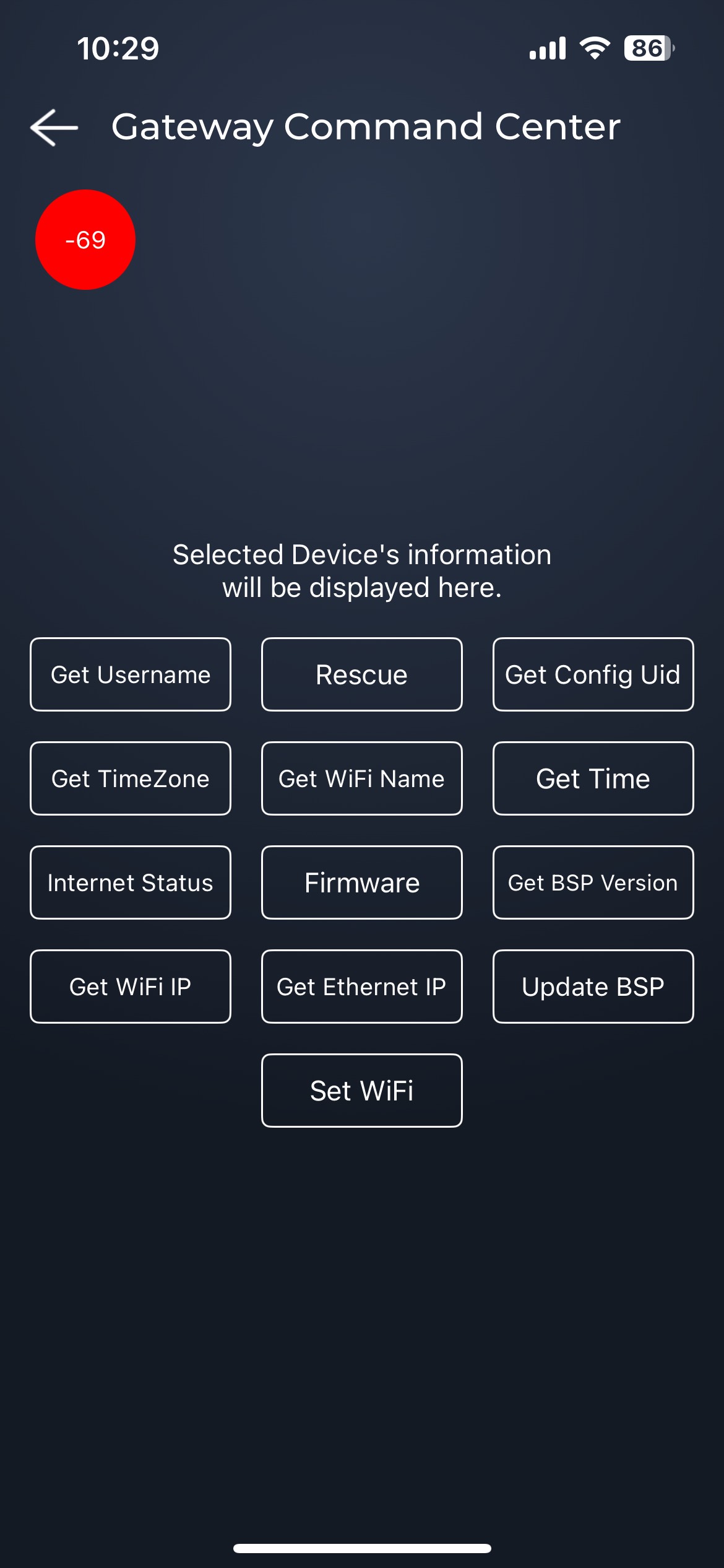Go into installer tools and select gateway command center. A circle should pop up, if not, click on "Rescue". Select the circle, click on "Firmware" and select the firmware 1B7, then click on "Update". It will take a minute or two for the update to go through. Then, you can refresh the app, and go through the pairing process again.