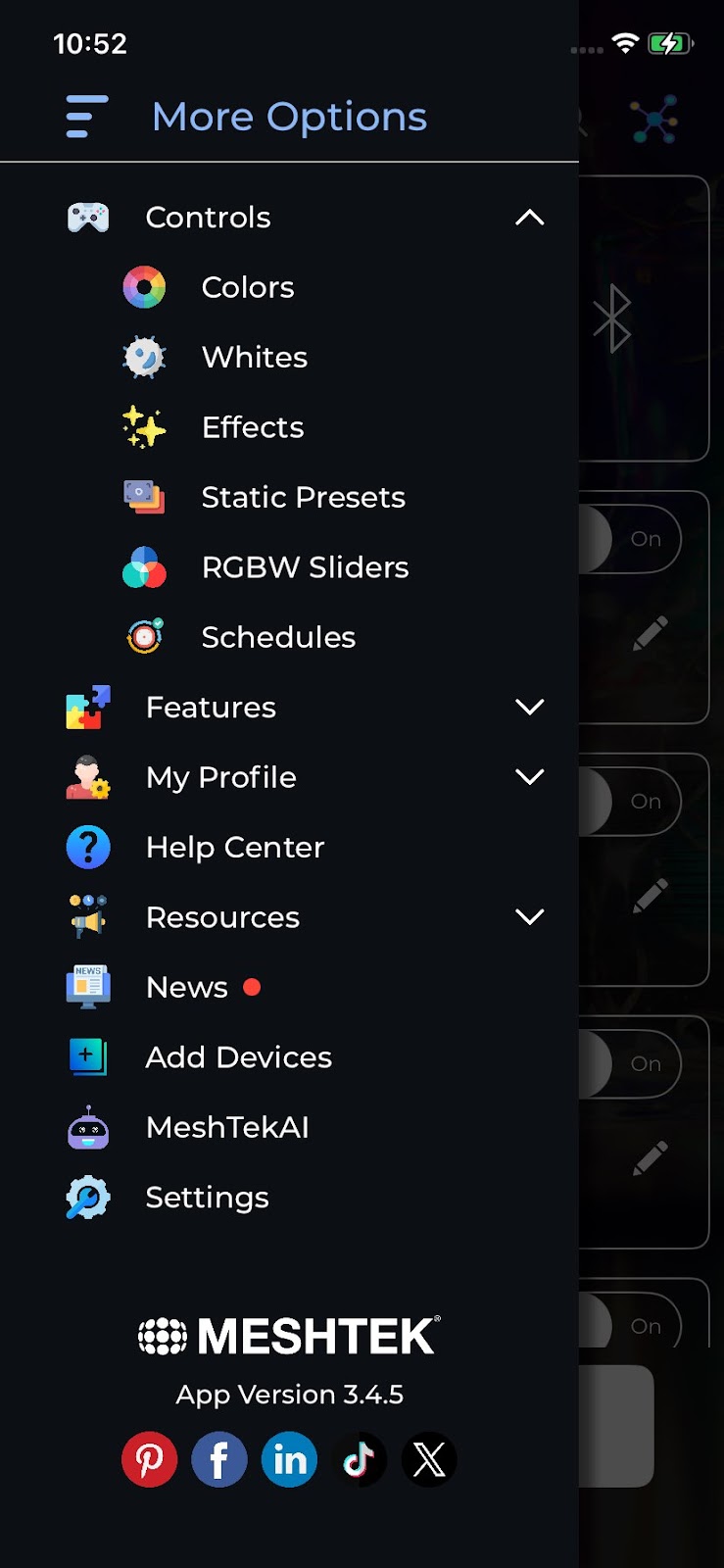 → Team Colors refers to the specific colors chosen to represent a team, often used logos, and branding. This feature is available when you have strip lighting( nuggets, pebbles, etc) paired in the app. To use this feature :