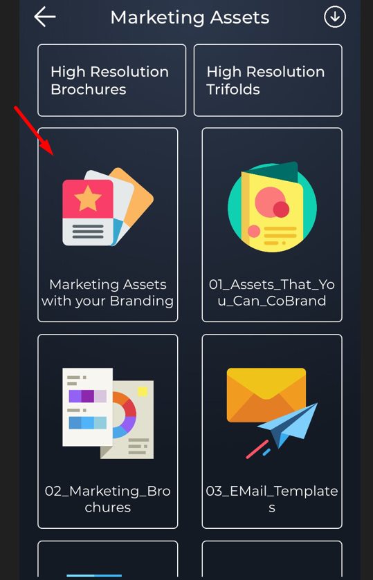 - For Co-Branded Assets Updates Select “Marketing Assets with your Branding”