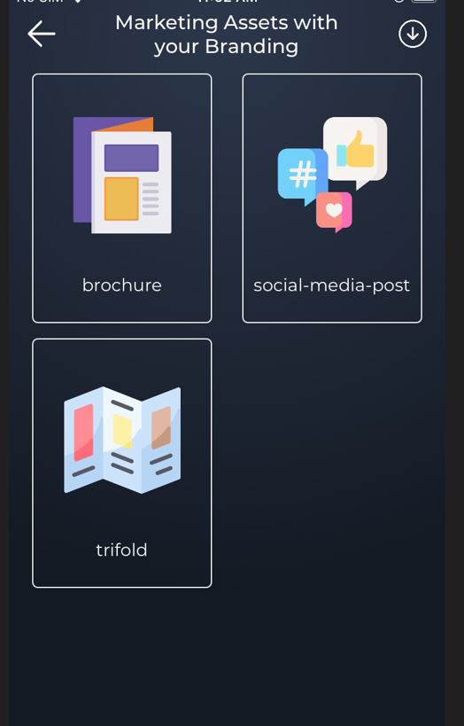 - Then we’re going to Trifold. You just need to go Download or share your brochure pdf. They set your logo according to your details.