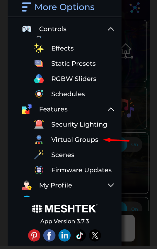 - Tap the "Features > Virtual Groups" section from the main menu.