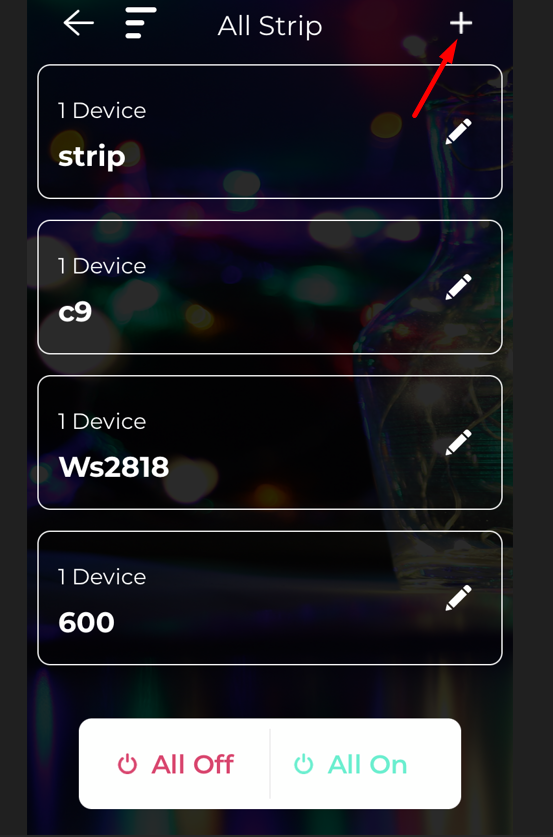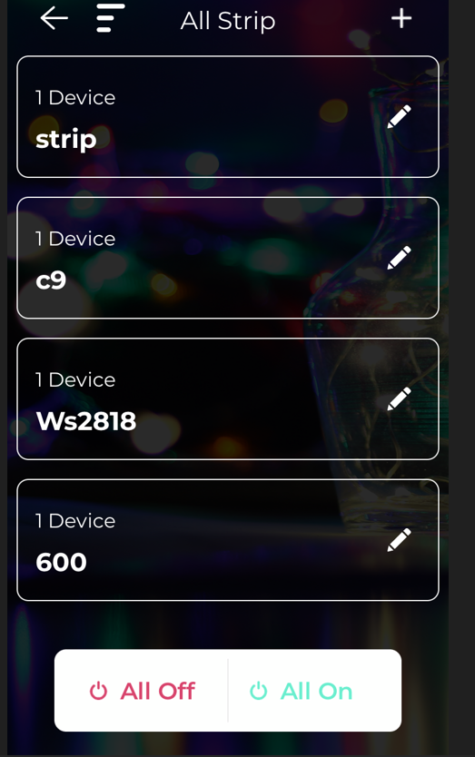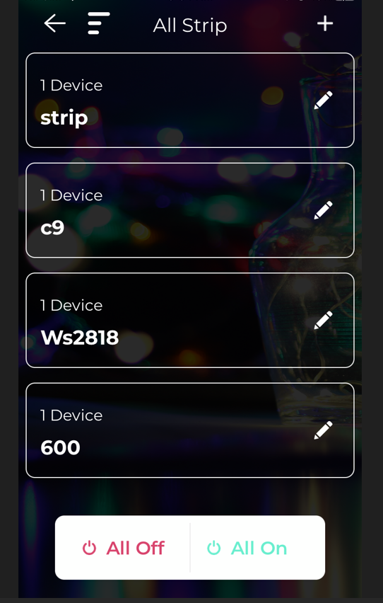 Each listed item represents a device or controller currently part of the "All Strip" group.