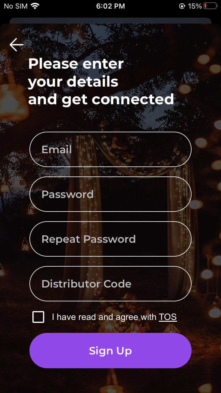 - Tap on the "Sign Up" button to go to the sign-up screen.