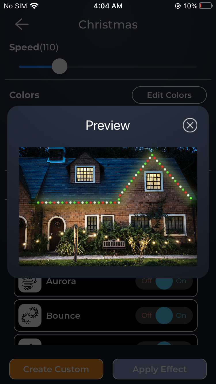 The Home Animation Effect Preview lets users see how lighting effects will look on their house before applying them. This feature makes it simple to preview decorative lighting, colors, patterns, and animations in a smart and user-friendly way.