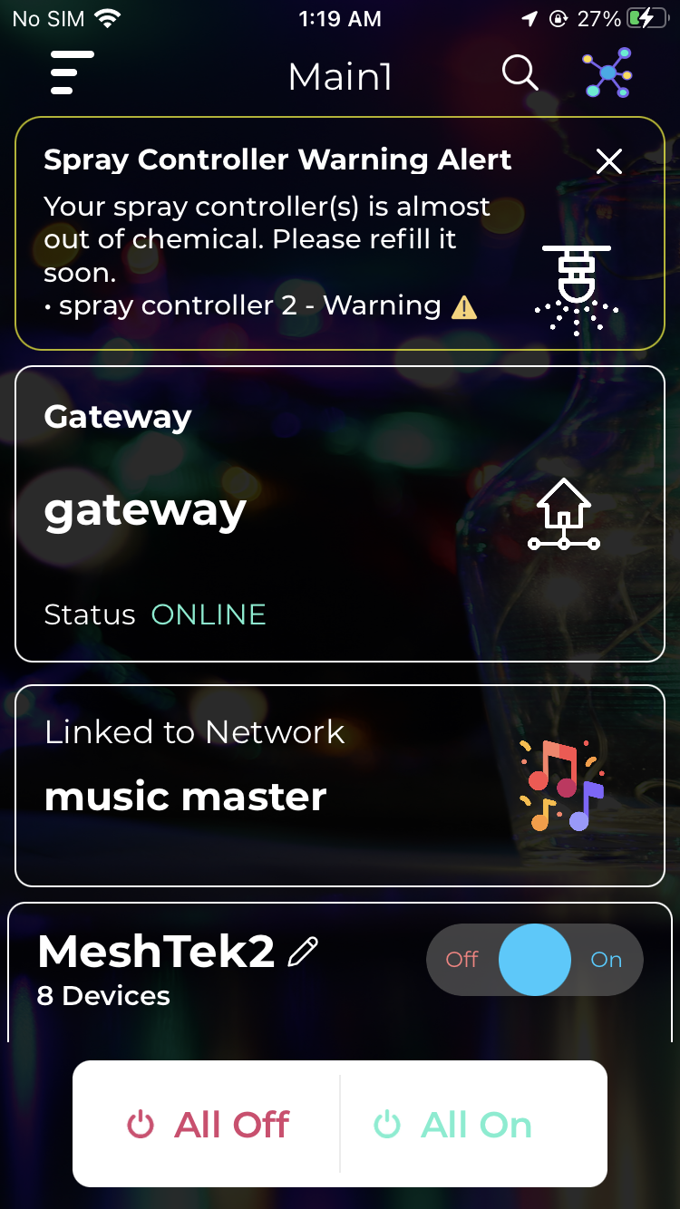 - Connects the spray controller to the network. Must be ONLINE for alerts and control features to work.