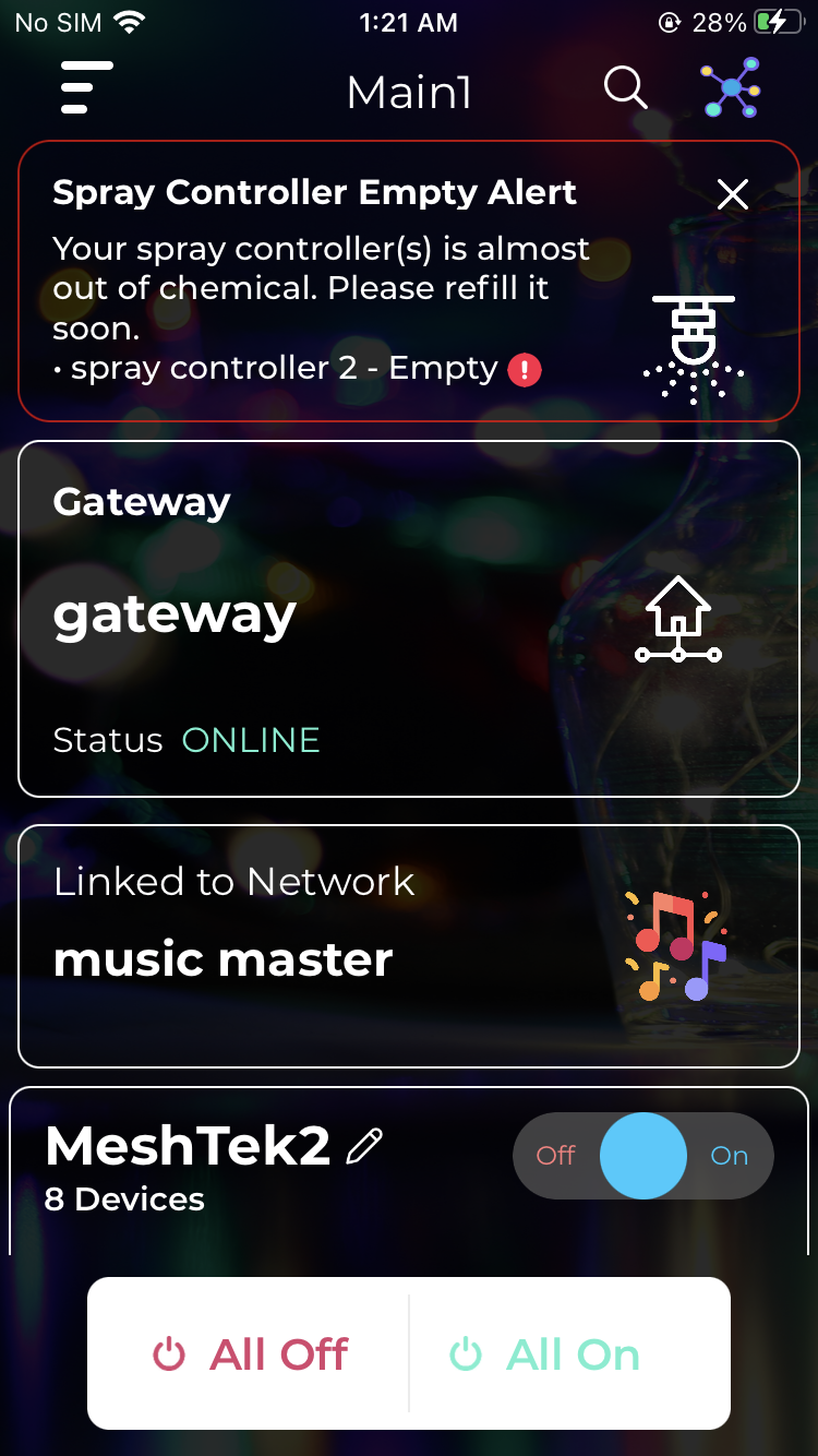 - Displays alerts on the network UI when the spray controller detects a warning or an empty state.