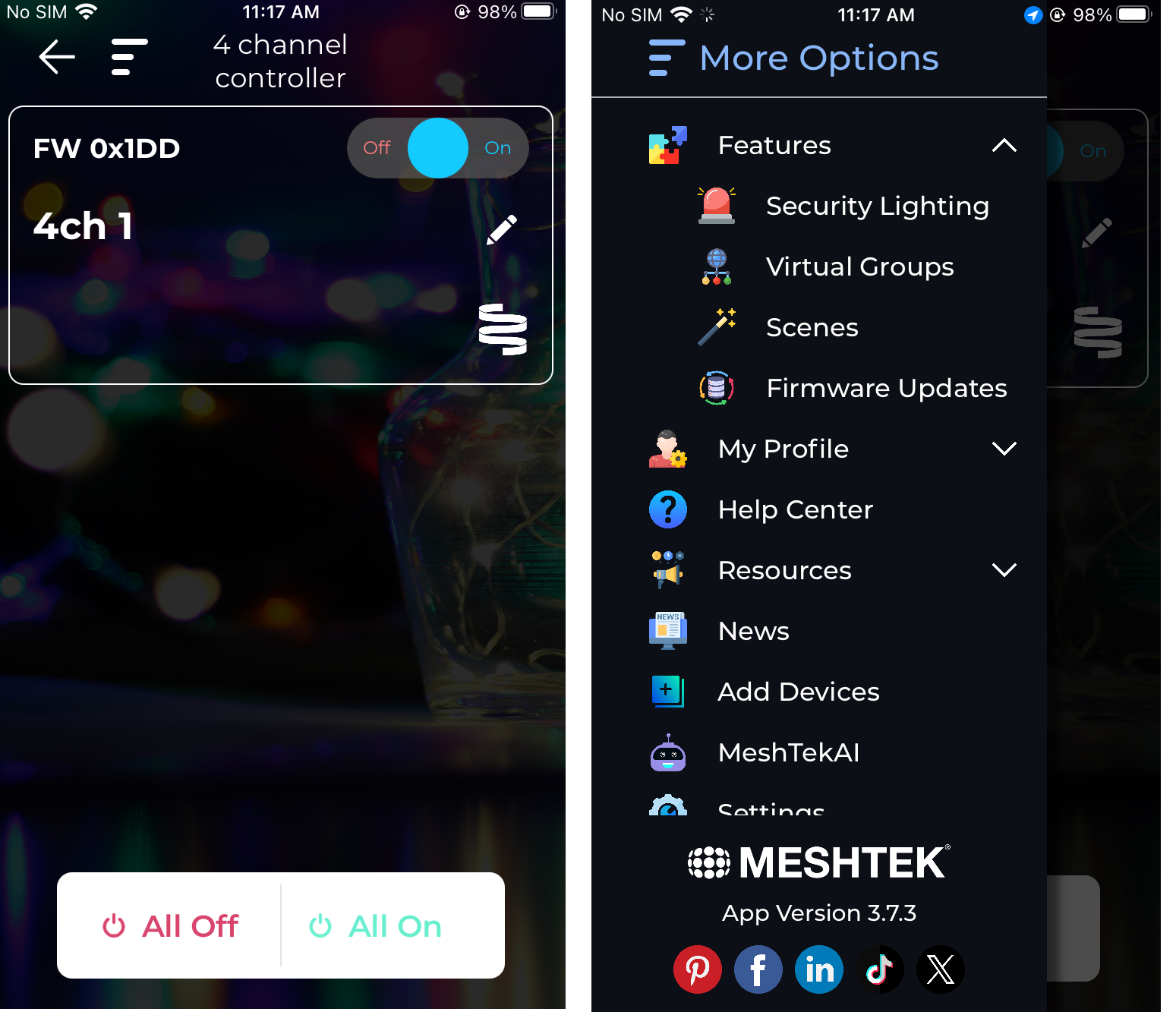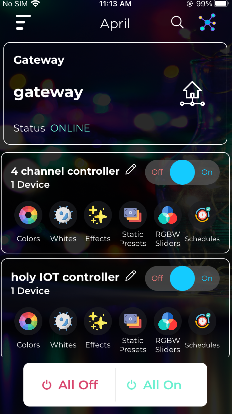 - Now tap on the group (here for instance 4 channel controller group) . The More Options icon will be visible on the left corner simply tap on it.