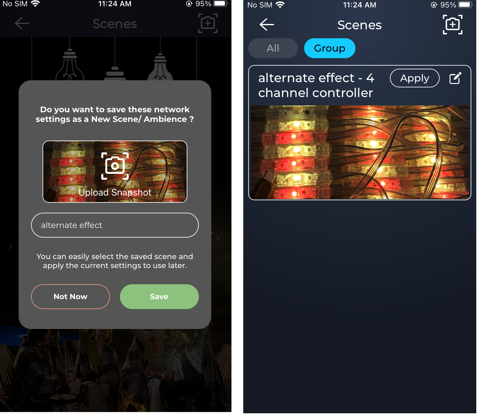 - To apply the scene, you can simply tap on Apply. The scene will be visible in network level also.