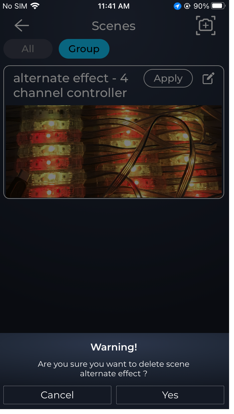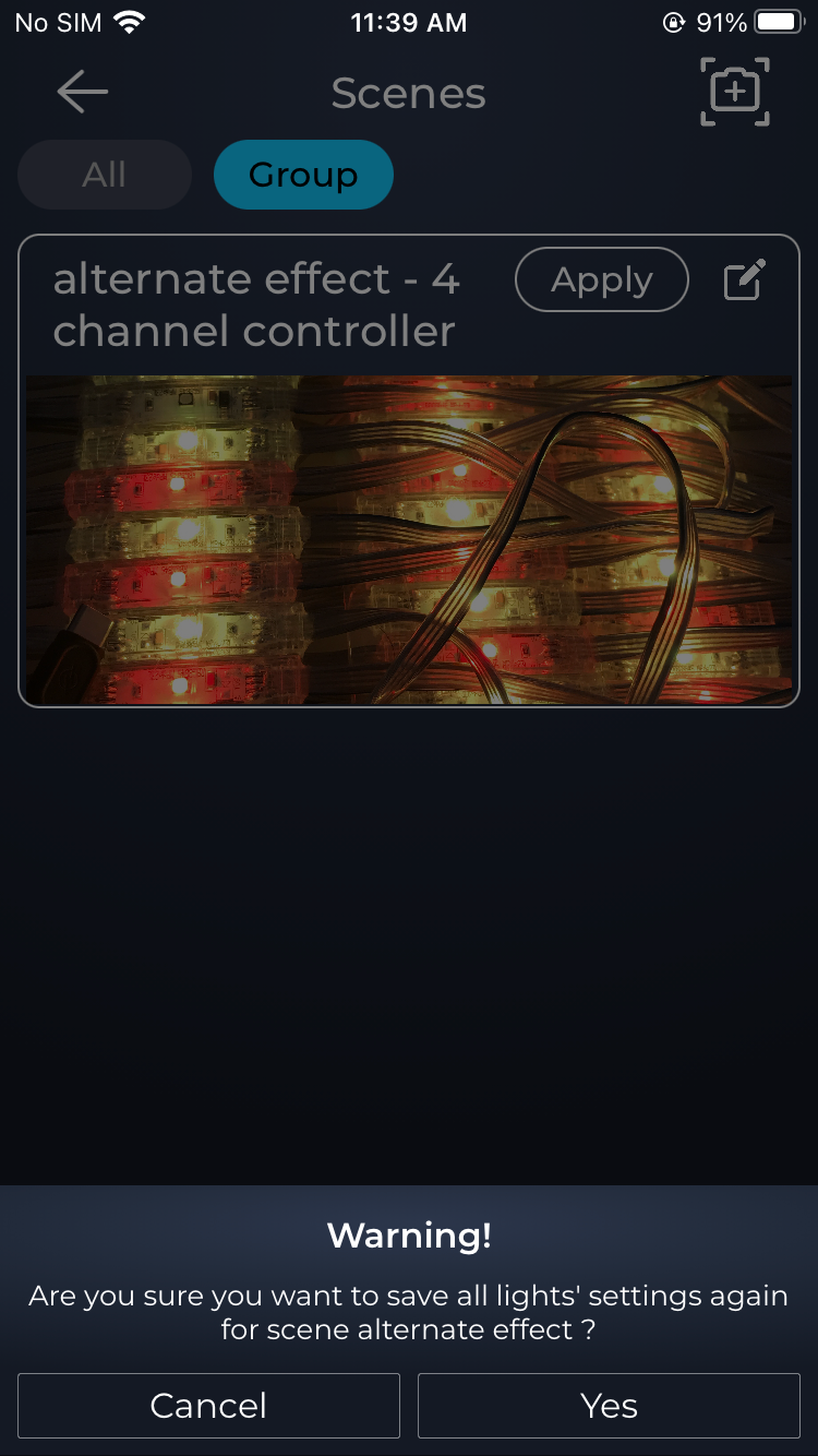 - Apply colors/Effects using group level controls and then at the group level tap on scenes