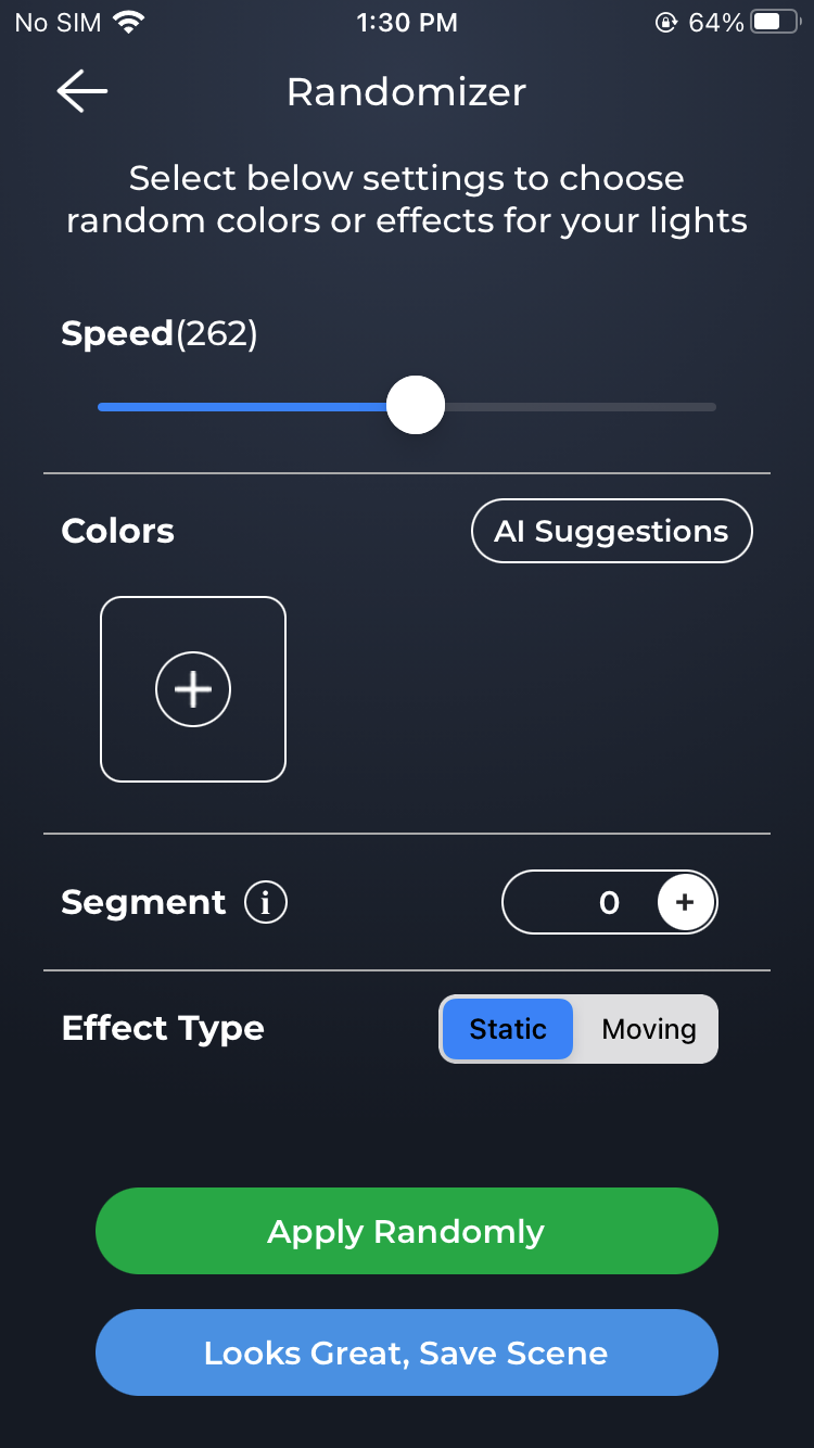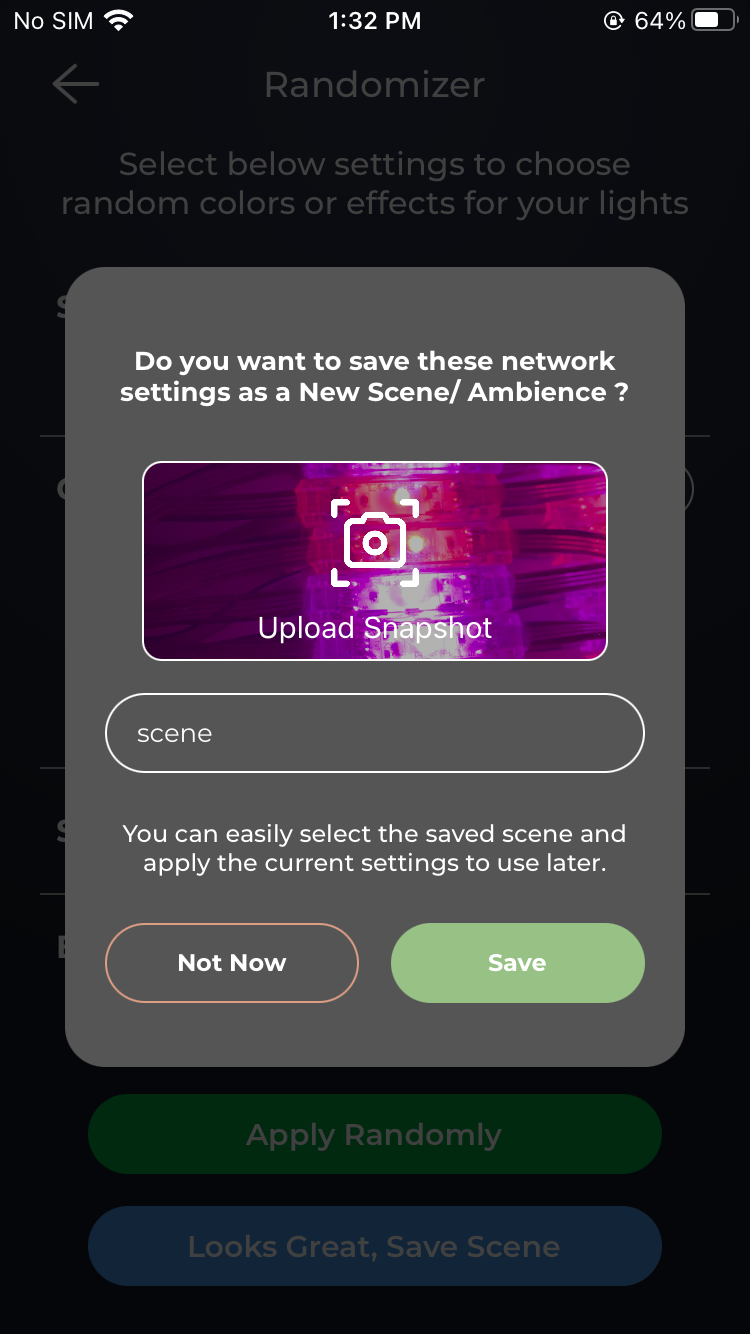 Tap on Apply Randomly and you can tap Save Scene once you finish the settings.