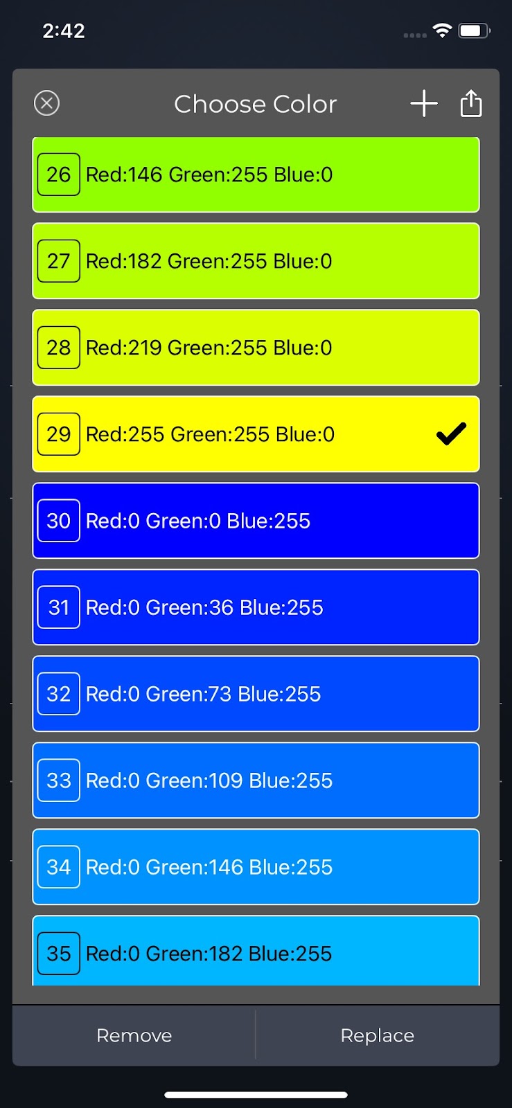 3. Tap the plus (+) icon to add a color. This will open the 'Choose Color' screen. Pick any color from the color palette and tap the 'Add' button at the bottom. If you don’t want to add a color, you can tap the 'Close' button at the top right of the screen.